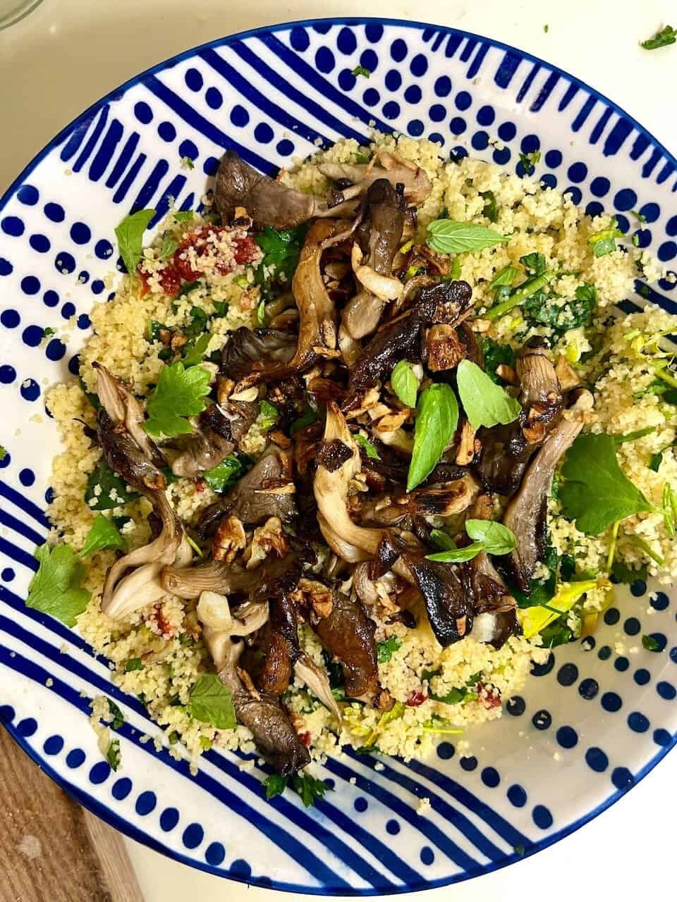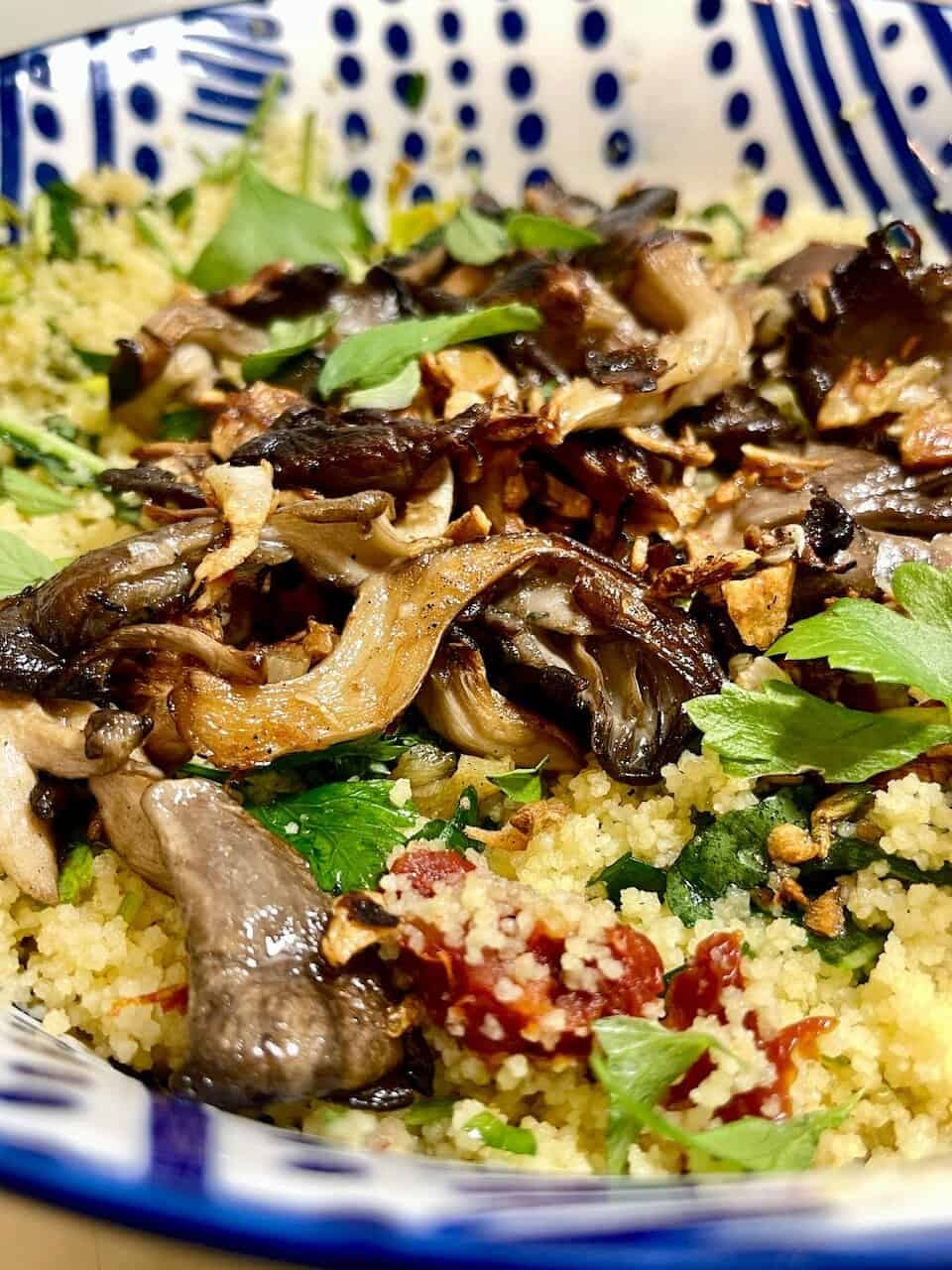 Lemon Herb Couscous Bowl with Garlicky Vegan Butter Oyster Mushrooms